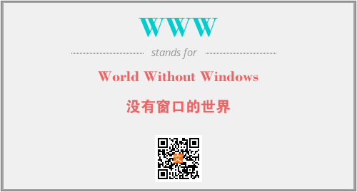 以上为World Without Windows英文缩略词WWW的中文解释,以及该英文缩写在英语的流行度、分类和应用领域方面的信息。