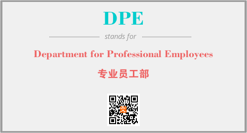上述内容是“Department for Professional Employees”作为“DPE”的缩写,解释为“专业员工部”时的信息,以及英文缩略词DPE所代表的英文单词,其对应的中文拼音、详细解释以及在英文中的流行度和相关分类、应用领域及应用示例等。