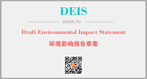 英文缩略词“DEIS”经常作为“Draft Environmental Impact Statement”的英文缩写来使用,中文表示:“环境影响报告草案”。本文将详细介绍英文缩写词DEIS所代表英文单词,其对应的中文拼音、详细解释以及在英语中的流行度。此外,还有关于缩略词DEIS的分类、应用领域及相关应用示例等。
