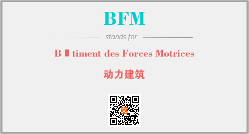 上述内容是“Bâtiment des Forces Motrices”作为“BFM”的缩写,解释为“动力建筑”时的信息,以及英文缩略词BFM所代表的英文单词,其对应的中文拼音、详细解释以及在英文中的流行度和相关分类、应用领域及应用示例等。