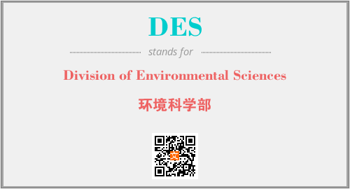 英文缩略词“DES”经常作为“Division of Environmental Sciences”的英文缩写来使用,中文表示:“环境科学部”。本文将详细介绍英文缩写词DES所代表英文单词,其对应的中文拼音、详细解释以及在英语中的流行度。此外,还有关于缩略词DES的分类、应用领域及相关应用示例等。