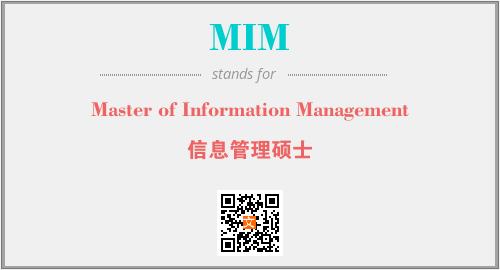 英文缩略词“MIM”经常作为“Master of Information Management”的英文缩写来使用,中文表示:“信息管理硕士”。本文将详细介绍英文缩写词MIM所代表英文单词,其对应的中文拼音、详细解释以及在英语中的流行度。此外,还有关于缩略词MIM的分类、应用领域及相关应用示例等。