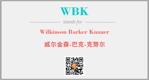 上述内容是“Wilkinson Barker Knauer”作为“WBK”的缩写,解释为“威尔金森-巴克-克努尔”时的信息,以及英文缩略词WBK所代表的英文单词,其对应的中文拼音、详细解释以及在英文中的流行度和相关分类、应用领域及应用示例等。