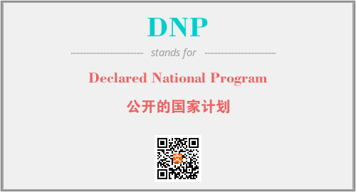 英文缩略词“DNP”经常作为“Declared National Program”的英文缩写来使用,中文表示:“公开的国家计划”。本文将详细介绍英文缩写词DNP所代表英文单词,其对应的中文拼音、详细解释以及在英语中的流行度。此外,还有关于缩略词DNP的分类、应用领域及相关应用示例等。
