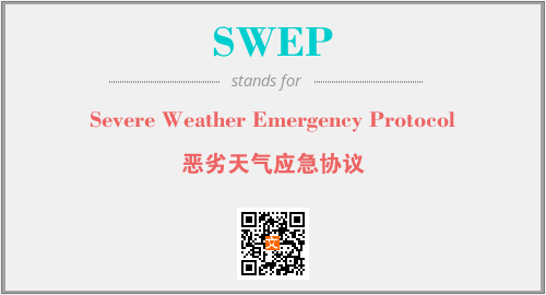 上述内容是“Severe Weather Emergency Protocol”作为“SWEP”的缩写,解释为“恶劣天气应急协议”时的信息,以及英文缩略词SWEP所代表的英文单词,其对应的中文拼音、详细解释以及在英文中的流行度和相关分类、应用领域及应用示例等。