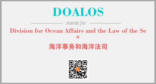 英文缩略词“DOALOS”经常作为“Division for Ocean Affairs and the Law of the Sea”的英文缩写来使用,中文表示:“海洋事务和海洋法司”。本文将详细介绍英文缩写词DOALOS所代表英文单词,其对应的中文拼音、详细解释以及在英语中的流行度。此外,还有关于缩略词DOALOS的分类、应用领域及相关应用示例等。