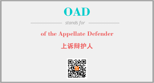 上述内容是“of the Appellate Defender”作为“OAD”的缩写,解释为“上诉辩护人”时的信息,以及英文缩略词OAD所代表的英文单词,其对应的中文拼音、详细解释以及在英文中的流行度和相关分类、应用领域及应用示例等。