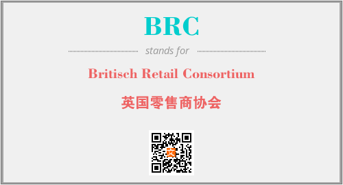上述内容是“Britisch Retail Consortium”作为“BRC”的缩写,解释为“英国零售商协会”时的信息,以及英文缩略词BRC所代表的英文单词,其对应的中文拼音、详细解释以及在英文中的流行度和相关分类、应用领域及应用示例等。