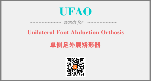 英文缩略词“UFAO”经常作为“Unilateral Foot Abduction Orthosis”的英文缩写来使用,中文表示:“单侧足外展矫形器”。本文将详细介绍英文缩写词UFAO所代表英文单词,其对应的中文拼音、详细解释以及在英语中的流行度。此外,还有关于缩略词UFAO的分类、应用领域及相关应用示例等。