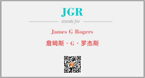 上述内容是“James G Rogers”作为“JGR”的缩写,解释为“詹姆斯·G·罗杰斯”时的信息,以及英文缩略词JGR所代表的英文单词,其对应的中文拼音、详细解释以及在英文中的流行度和相关分类、应用领域及应用示例等。