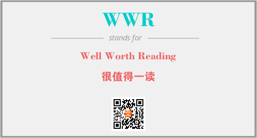 英文缩略词“WWR”经常作为“Well Worth Reading”的英文缩写来使用,中文表示:“很值得一读”。本文将详细介绍英文缩写词WWR所代表英文单词,其对应的中文拼音、详细解释以及在英语中的流行度。此外,还有关于缩略词WWR的分类、应用领域及相关应用示例等。