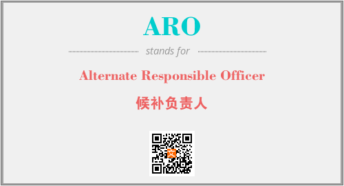 上述内容是“Alternate Responsible Officer”作为“ARO”的缩写,解释为“候补负责人”时的信息,以及英文缩略词ARO所代表的英文单词,其对应的中文拼音、详细解释以及在英文中的流行度和相关分类、应用领域及应用示例等。