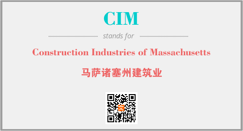英文缩略词“CIM”经常作为“Construction Industries of Massachusetts”的英文缩写来使用,中文表示:“马萨诸塞州建筑业”。本文将详细介绍英文缩写词CIM所代表英文单词,其对应的中文拼音、详细解释以及在英语中的流行度。此外,还有关于缩略词CIM的分类、应用领域及相关应用示例等。