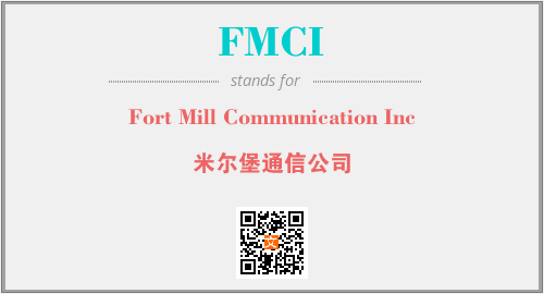 上述内容是“Fort Mill Communication Inc”作为“FMCI”的缩写,解释为“米尔堡通信公司”时的信息,以及英文缩略词FMCI所代表的英文单词,其对应的中文拼音、详细解释以及在英文中的流行度和相关分类、应用领域及应用示例等。