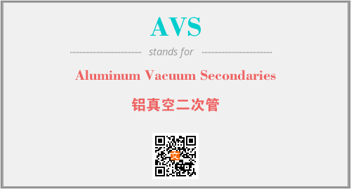英文缩略词“AVS”经常作为“Aluminum Vacuum Secondaries”的英文缩写来使用,中文表示:“铝真空二次管”。本文将详细介绍英文缩写词AVS所代表英文单词,其对应的中文拼音、详细解释以及在英语中的流行度。此外,还有关于缩略词AVS的分类、应用领域及相关应用示例等。