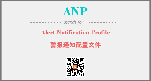 英文缩略词“ANP”经常作为“Alert Notification Profile”的英文缩写来使用,中文表示:“警报通知配置文件”。本文将详细介绍英文缩写词ANP所代表英文单词,其对应的中文拼音、详细解释以及在英语中的流行度。此外,还有关于缩略词ANP的分类、应用领域及相关应用示例等。