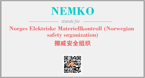 以上为Norges Elektriske Materiellkontroll (Norwegian safety organization)英文缩略词NEMKO的中文解释,以及该英文缩写在英语的流行度、分类和应用领域方面的信息。