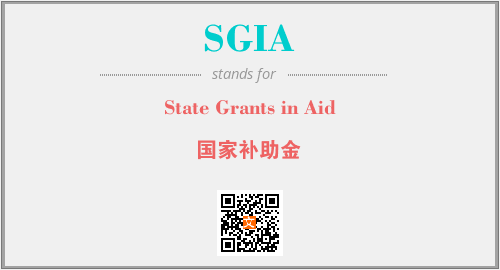 上述内容是“State Grants in Aid”作为“SGIA”的缩写,解释为“国家补助金”时的信息,以及英文缩略词SGIA所代表的英文单词,其对应的中文拼音、详细解释以及在英文中的流行度和相关分类、应用领域及应用示例等。