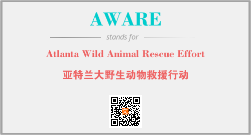 上述内容是“Atlanta Wild Animal Rescue Effort”作为“AWARE”的缩写,解释为“亚特兰大野生动物救援行动”时的信息,以及英文缩略词AWARE所代表的英文单词,其对应的中文拼音、详细解释以及在英文中的流行度和相关分类、应用领域及应用示例等。