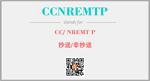 英文缩略词“CCNREMTP”经常作为“CC/ NREMT P”的英文缩写来使用,中文表示:“抄送/非抄送”。本文将详细介绍英文缩写词CCNREMTP所代表英文单词,其对应的中文拼音、详细解释以及在英语中的流行度。此外,还有关于缩略词CCNREMTP的分类、应用领域及相关应用示例等。