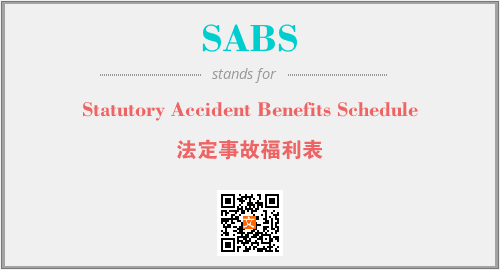 上述内容是“Statutory Accident Benefits Schedule”作为“SABS”的缩写,解释为“法定事故福利表”时的信息,以及英文缩略词SABS所代表的英文单词,其对应的中文拼音、详细解释以及在英文中的流行度和相关分类、应用领域及应用示例等。