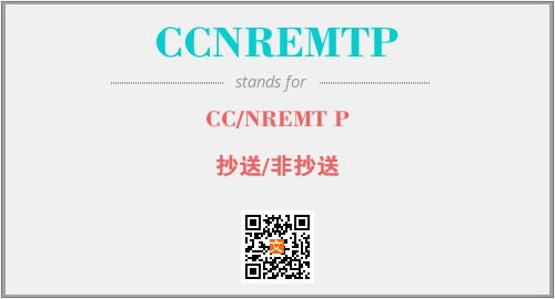 英文缩略词“CCNREMTP”经常作为“CC/NREMT P”的英文缩写来使用,中文表示:“抄送/非抄送”。本文将详细介绍英文缩写词CCNREMTP所代表英文单词,其对应的中文拼音、详细解释以及在英语中的流行度。此外,还有关于缩略词CCNREMTP的分类、应用领域及相关应用示例等。