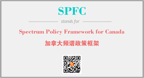 上述内容是“Spectrum Policy Framework for Canada”作为“SPFC”的缩写,解释为“加拿大频谱政策框架”时的信息,以及英文缩略词SPFC所代表的英文单词,其对应的中文拼音、详细解释以及在英文中的流行度和相关分类、应用领域及应用示例等。
