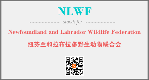 上述内容是“Newfoundland and Labrador Wildlife Federation”作为“NLWF”的缩写,解释为“纽芬兰和拉布拉多野生动物联合会”时的信息,以及英文缩略词NLWF所代表的英文单词,其对应的中文拼音、详细解释以及在英文中的流行度和相关分类、应用领域及应用示例等。