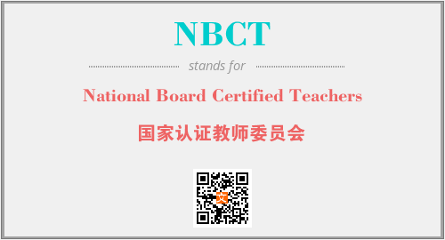 英文缩略词“NBCT”经常作为“National Board Certified Teachers”的英文缩写来使用,中文表示:“国家认证教师委员会”。本文将详细介绍英文缩写词NBCT所代表英文单词,其对应的中文拼音、详细解释以及在英语中的流行度。此外,还有关于缩略词NBCT的分类、应用领域及相关应用示例等。