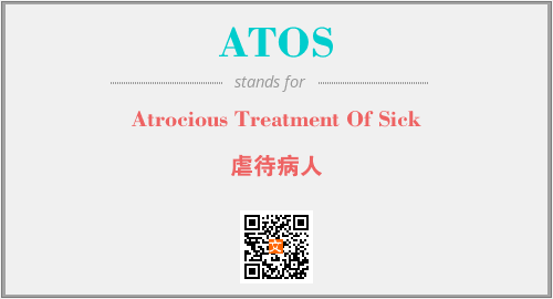 英文缩略词“ATOS”经常作为“Atrocious Treatment Of Sick”的英文缩写来使用,中文表示:“虐待病人”。本文将详细介绍英文缩写词ATOS所代表英文单词,其对应的中文拼音、详细解释以及在英语中的流行度。此外,还有关于缩略词ATOS的分类、应用领域及相关应用示例等。