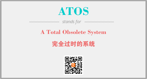 英文缩略词“ATOS”经常作为“A Total Obsolete System”的英文缩写来使用,中文表示:“完全过时的系统”。本文将详细介绍英文缩写词ATOS所代表英文单词,其对应的中文拼音、详细解释以及在英语中的流行度。此外,还有关于缩略词ATOS的分类、应用领域及相关应用示例等。