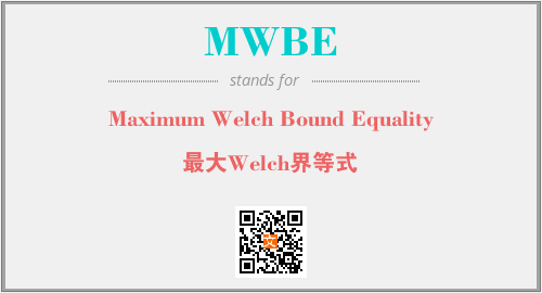 英文缩略词“MWBE”经常作为“Maximum Welch Bound Equality”的英文缩写来使用,中文表示:“最大Welch界等式”。本文将详细介绍英文缩写词MWBE所代表英文单词,其对应的中文拼音、详细解释以及在英语中的流行度。此外,还有关于缩略词MWBE的分类、应用领域及相关应用示例等。