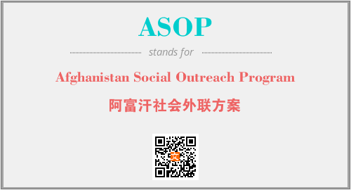 以上为Afghanistan Social Outreach Program英文缩略词ASOP的中文解释,以及该英文缩写在英语的流行度、分类和应用领域方面的信息。