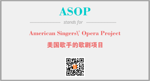 以上为American Singers\' Opera Project英文缩略词ASOP的中文解释,以及该英文缩写在英语的流行度、分类和应用领域方面的信息。