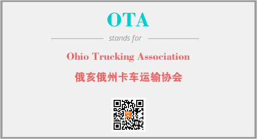 上述内容是“Ohio Trucking Association”作为“OTA”的缩写,解释为“俄亥俄州卡车运输协会”时的信息,以及英文缩略词OTA所代表的英文单词,其对应的中文拼音、详细解释以及在英文中的流行度和相关分类、应用领域及应用示例等。