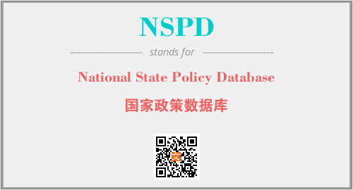 上述内容是“National State Policy Database”作为“NSPD”的缩写,解释为“国家政策数据库”时的信息,以及英文缩略词NSPD所代表的英文单词,其对应的中文拼音、详细解释以及在英文中的流行度和相关分类、应用领域及应用示例等。