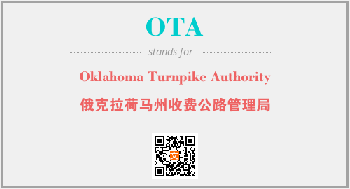 以上为Oklahoma Turnpike Authority英文缩略词OTA的中文解释,以及该英文缩写在英语的流行度、分类和应用领域方面的信息。