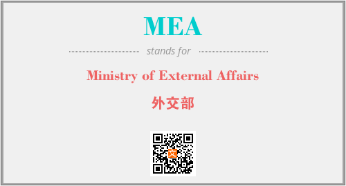 上述内容是“Ministry of External Affairs”作为“MEA”的缩写,解释为“外交部”时的信息,以及英文缩略词MEA所代表的英文单词,其对应的中文拼音、详细解释以及在英文中的流行度和相关分类、应用领域及应用示例等。