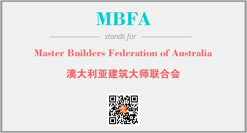 英文缩略词“MBFA”经常作为“Master Builders Federation of Australia”的英文缩写来使用,中文表示:“澳大利亚建筑大师联合会”。本文将详细介绍英文缩写词MBFA所代表英文单词,其对应的中文拼音、详细解释以及在英语中的流行度。此外,还有关于缩略词MBFA的分类、应用领域及相关应用示例等。