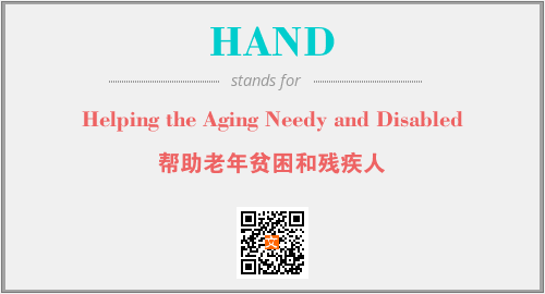 上述内容是“Helping the Aging Needy and Disabled”作为“HAND”的缩写,解释为“帮助老年贫困和残疾人”时的信息,以及英文缩略词HAND所代表的英文单词,其对应的中文拼音、详细解释以及在英文中的流行度和相关分类、应用领域及应用示例等。