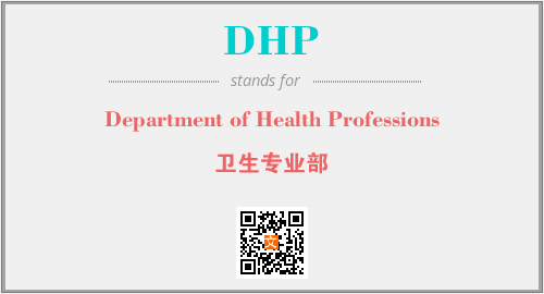 英文缩略词“DHP”经常作为“Department of Health Professions”的英文缩写来使用,中文表示:“卫生专业部”。本文将详细介绍英文缩写词DHP所代表英文单词,其对应的中文拼音、详细解释以及在英语中的流行度。此外,还有关于缩略词DHP的分类、应用领域及相关应用示例等。
