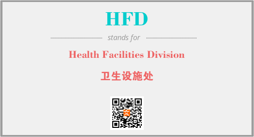 上述内容是“Health Facilities Division”作为“HFD”的缩写,解释为“卫生设施处”时的信息,以及英文缩略词HFD所代表的英文单词,其对应的中文拼音、详细解释以及在英文中的流行度和相关分类、应用领域及应用示例等。