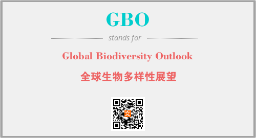 上述内容是“Global Biodiversity Outlook”作为“GBO”的缩写,解释为“全球生物多样性展望”时的信息,以及英文缩略词GBO所代表的英文单词,其对应的中文拼音、详细解释以及在英文中的流行度和相关分类、应用领域及应用示例等。