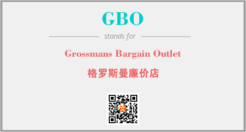 以上为Grossmans Bargain Outlet英文缩略词GBO的中文解释,以及该英文缩写在英语的流行度、分类和应用领域方面的信息。