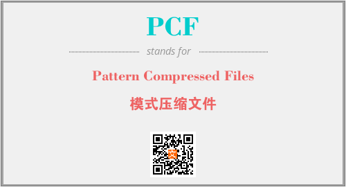 上述内容是“Pattern Compressed Files”作为“PCF”的缩写,解释为“模式压缩文件”时的信息,以及英文缩略词PCF所代表的英文单词,其对应的中文拼音、详细解释以及在英文中的流行度和相关分类、应用领域及应用示例等。