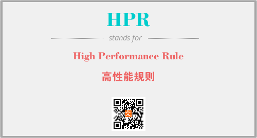 英文缩略词“HPR”经常作为“High Performance Rule”的英文缩写来使用,中文表示:“高性能规则”。本文将详细介绍英文缩写词HPR所代表英文单词,其对应的中文拼音、详细解释以及在英语中的流行度。此外,还有关于缩略词HPR的分类、应用领域及相关应用示例等。