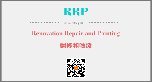 上述内容是“Renovation Repair and Painting”作为“RRP”的缩写,解释为“翻修和喷漆”时的信息,以及英文缩略词RRP所代表的英文单词,其对应的中文拼音、详细解释以及在英文中的流行度和相关分类、应用领域及应用示例等。