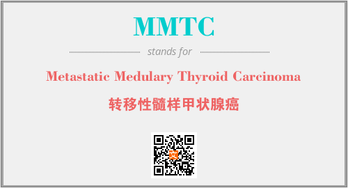 上述内容是“Metastatic Medulary Thyroid Carcinoma”作为“MMTC”的缩写,解释为“转移性髓样甲状腺癌”时的信息,以及英文缩略词MMTC所代表的英文单词,其对应的中文拼音、详细解释以及在英文中的流行度和相关分类、应用领域及应用示例等。