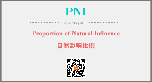 上述内容是“Proportion of Natural Influence”作为“PNI”的缩写,解释为“自然影响比例”时的信息,以及英文缩略词PNI所代表的英文单词,其对应的中文拼音、详细解释以及在英文中的流行度和相关分类、应用领域及应用示例等。