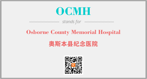 英文缩略词“OCMH”经常作为“Osborne County Memorial Hospital”的英文缩写来使用,中文表示:“奥斯本县纪念医院”。本文将详细介绍英文缩写词OCMH所代表英文单词,其对应的中文拼音、详细解释以及在英语中的流行度。此外,还有关于缩略词OCMH的分类、应用领域及相关应用示例等。